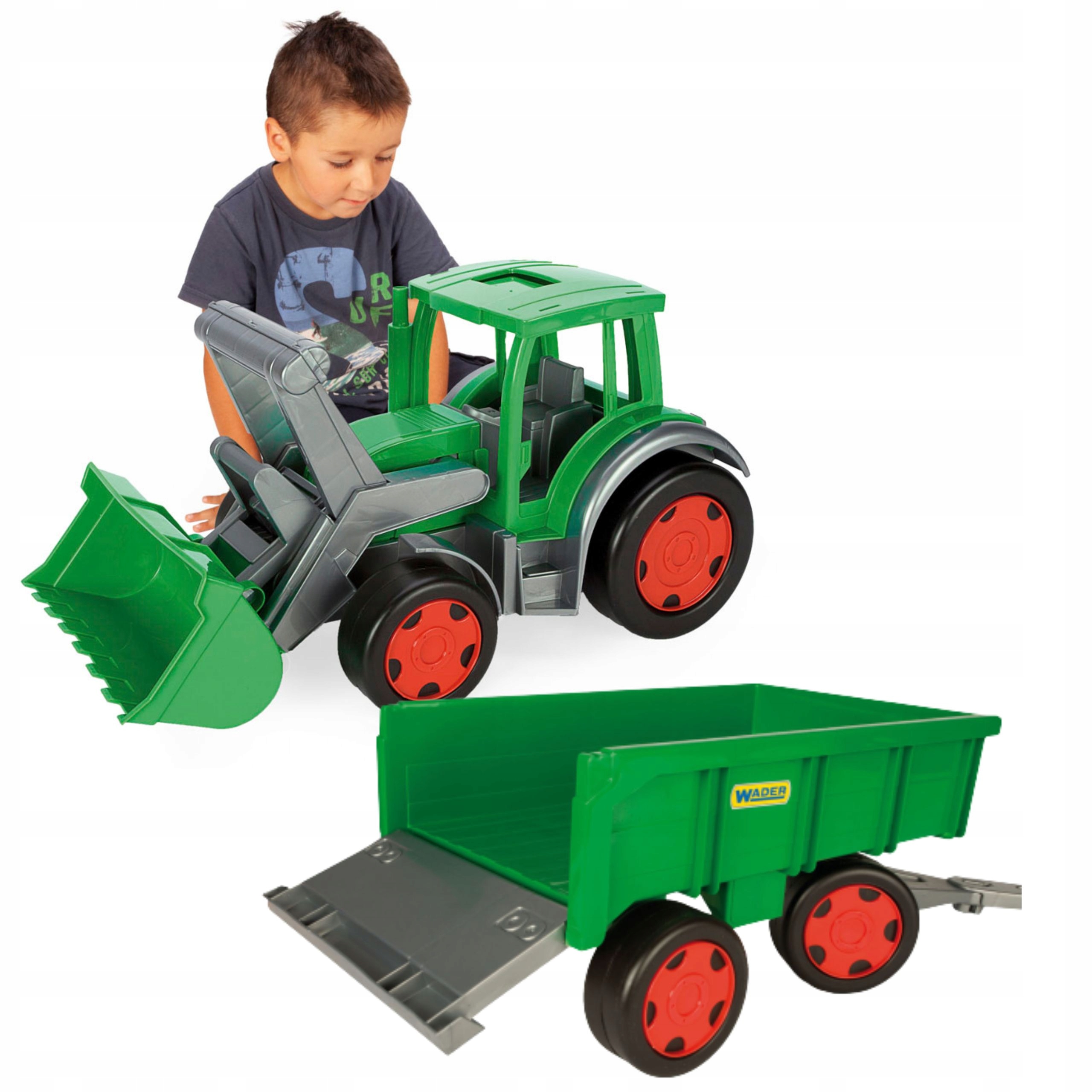 Wyjątkową zaletą tego zestawu jest jego solidna i trwała konstrukcja – traktor wytrzymuje obciążenie do 100 kg, a przyczepa do 60 kg, co sprawia, że zabawka jest nie tylko efektowna, ale też wytrzymała i bezpieczna.